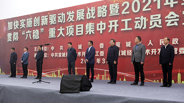 孔曉宏在講話中指出,本(běn)次開工動員會是加快實施創新驅動戰略的具體行動(dòng),是確(què)保“十四五”發展(zhǎn)開好局、起好步的重要舉措(cuò),更(gèng)是全市狠(hěn)抓項目、擴大投(tóu)資(zī)、穩定增長(zhǎng)的(de)動員令。他表示,項目建設是經濟(jì)工作的主抓手,要(yào)早日把今天的新開工(gōng)項(xiàng)目轉化為明(míng)天的現(xiàn)實生產力和發展(zhǎn)競爭力,以優異成(chéng)績慶祝建黨100周年。