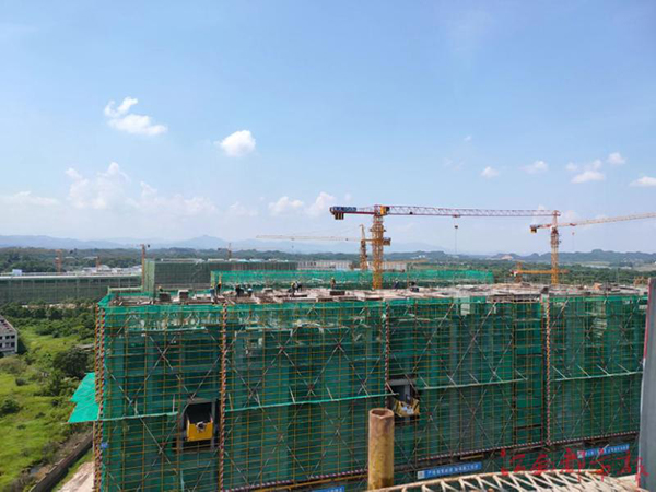 7月(yuè)12日上(shàng)午,在廣信區城南新區的(de)和興家園(yuán)安置小(xiǎo)區項目(mù)施工現場,各類大型機械開足馬力,一輛輛大卡車運(yùn)著材料駛進施工場地,工人們馬不停蹄地搶抓(zhuā)時間節點,高峰(fēng)期,每天施工人員超500餘人。